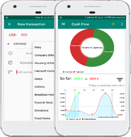 Record all your daily cash flows, Income and Expenses, in categories and optional backup with only your phone.