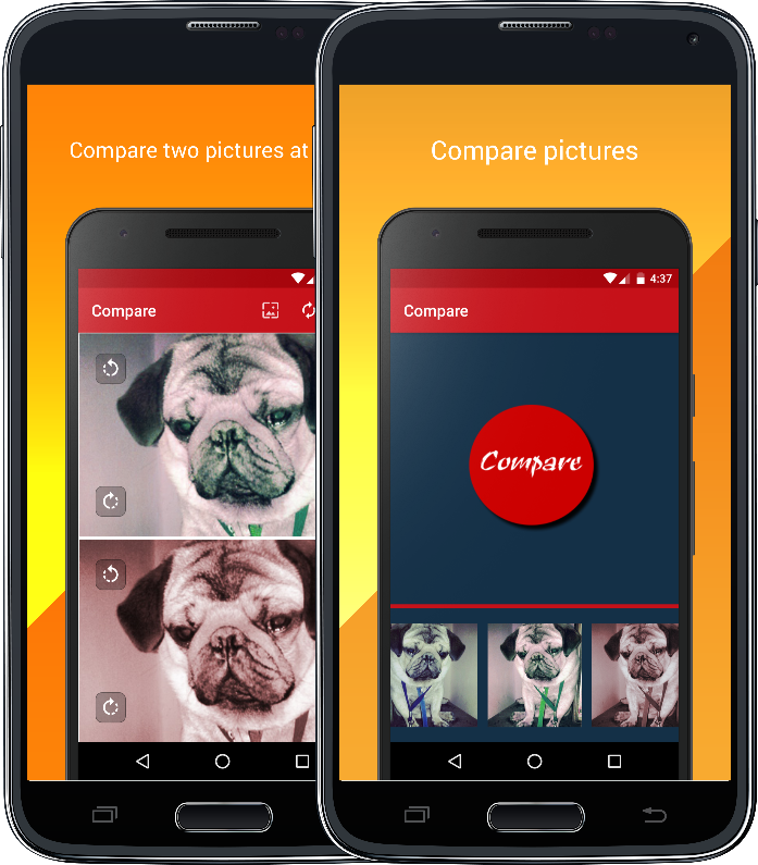 Compare is an ad-free and an open source application to compare two images
