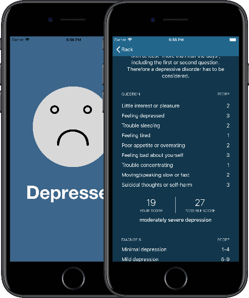 - then app automatic calculates you are depressed or not.
