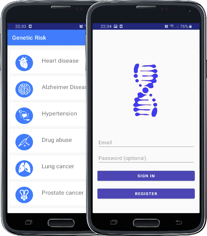 Application allows to upload raw DNA data from 23andMe, MyHeritage, AncestryDNA and shows predisposition to diseases like Alzheimer Disease, Lung Cancer, Hears Diseases etc...