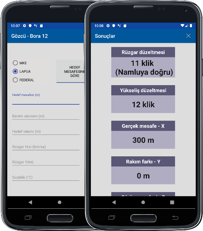 • Mke, Lapua ve Federal mühimmatları için hesaplama yapar.