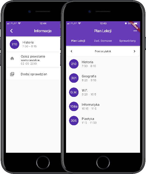 Szybki dostęp do planu lekcji i zadań domowych.