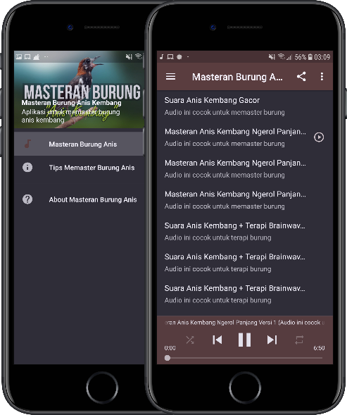 Aplikasi berisi suara kicauan burung terfavorit yang sangat cocok digunakan untuk masteran burung anis kembang.