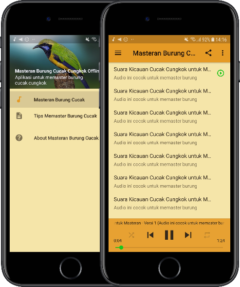 Aplikasi berisi suara burung cocok digunakan untuk masteran burung cucak cungkok