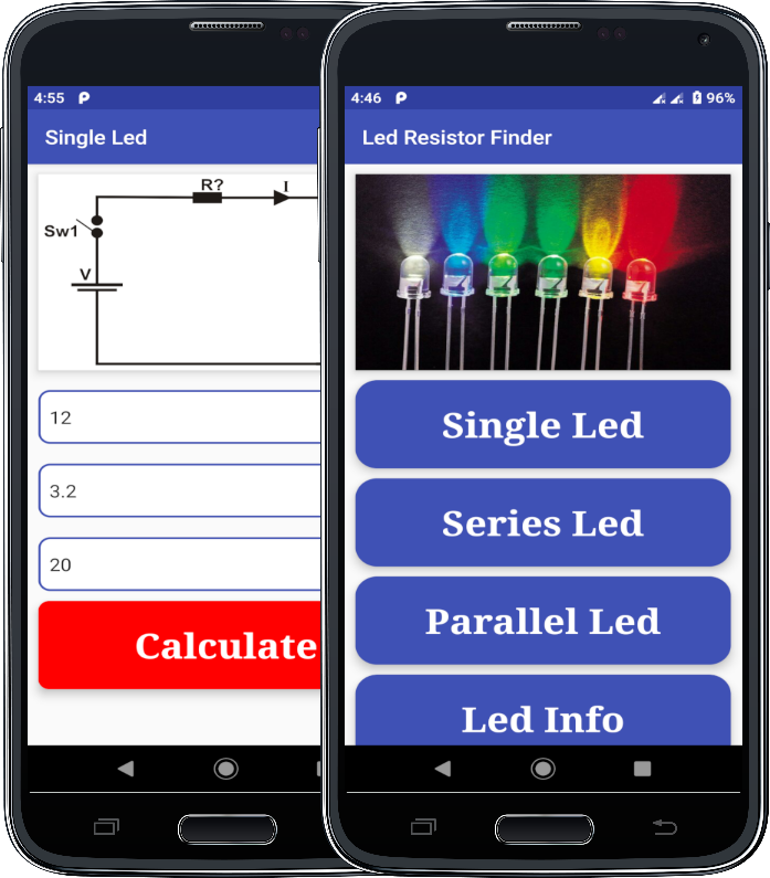 Led resistor calculator, makes use of ohms law to find the perfect resistor value for your led circuit.