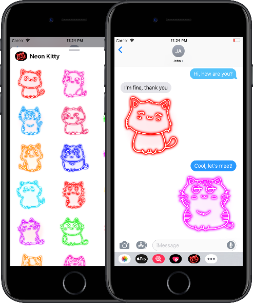 Awesome set of super cute and colourful Neon Kitties, that glow in the dark!