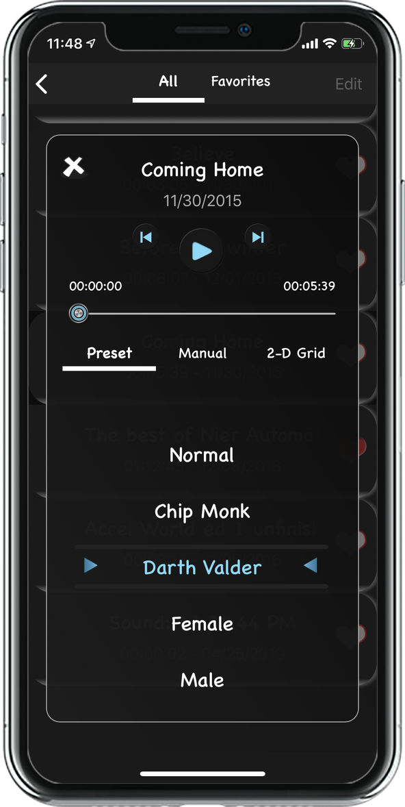 - Select songs / or record your own sounds and change them the way you want.
